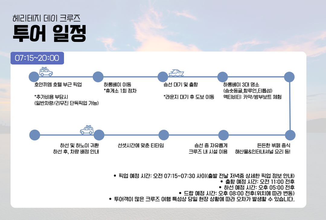 * 지금부터 이하 내용들은, 당일 크루즈 현장 상황에 따라 예고 없이 변경될 수 있습니다.