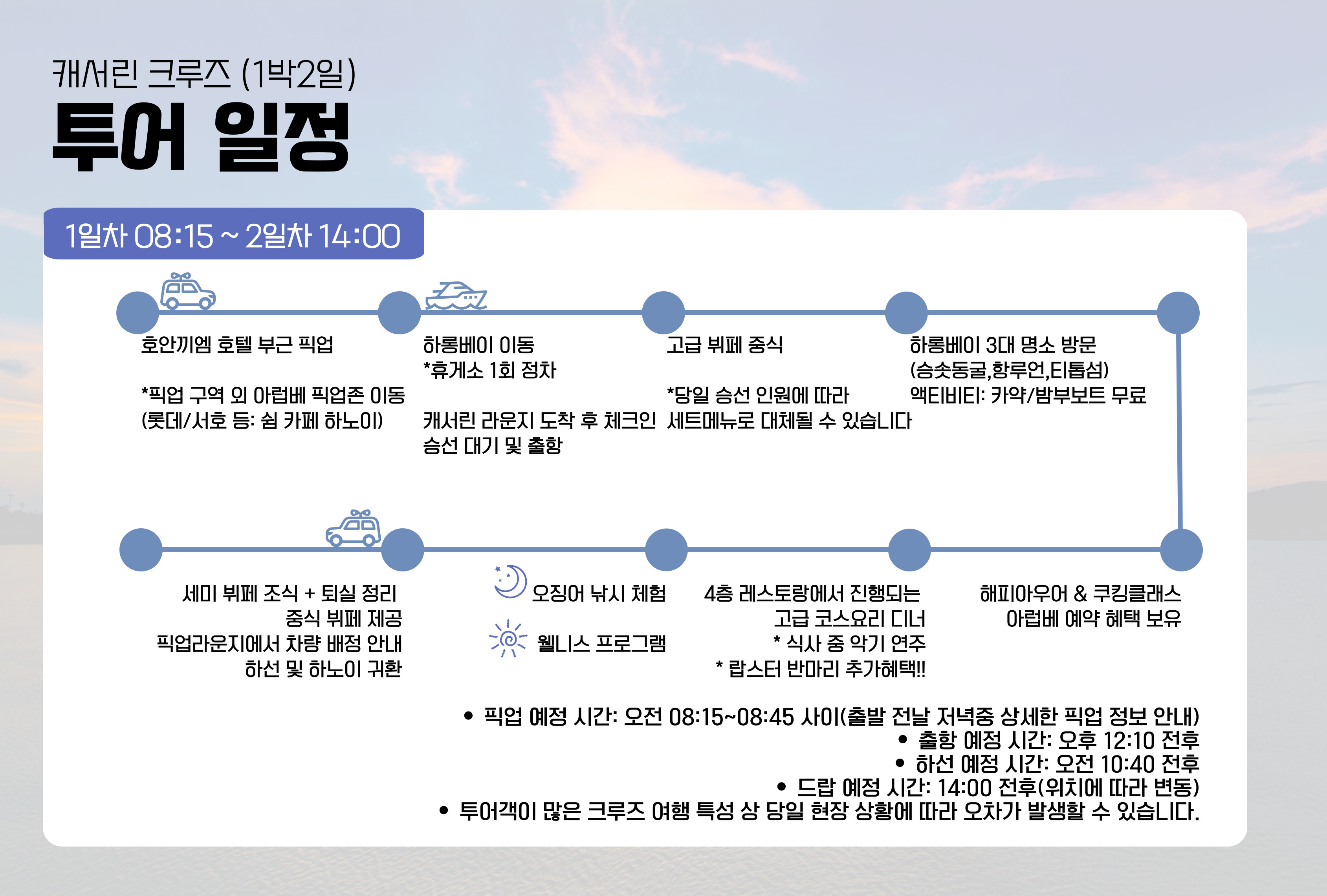 * 지금부터 이하 내용들은, 당일 크루즈 현장 상황에 따라 예고 없이 변경될 수 있습니다.