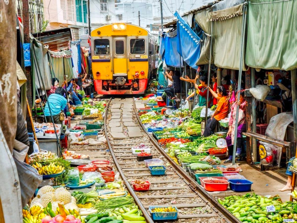 기찻길 위에 시장이 열리는 독특한 풍경으로 유명합니다.
